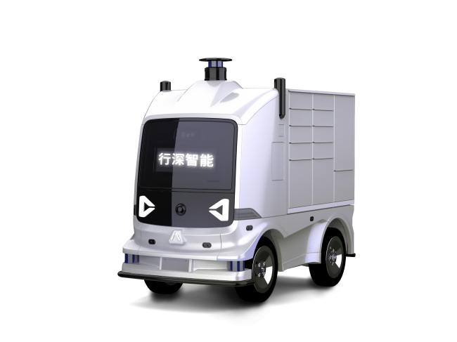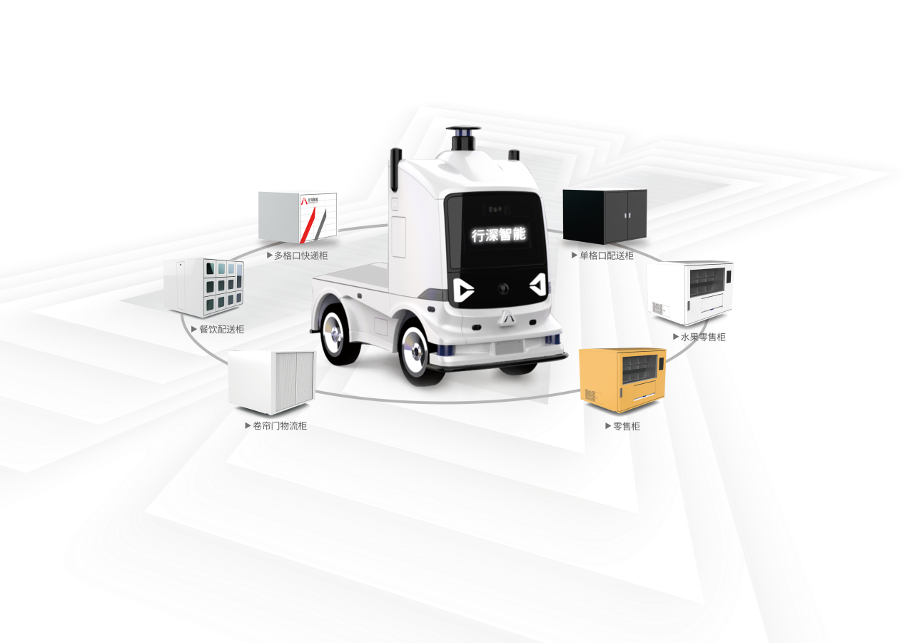 为适应多种末端物流应用场景,行深智能自主研发了超影、翻羽、奔霄、绝地和布衣等系列L4级无人车产品。其中绝地无人车作为第五代稳定车型,采取了货柜分离设计。可根据不同客户业务场景提供多种货柜,零售柜、快递柜、快餐柜、消杀柜和物流柜等,满足客户不同业务需求。