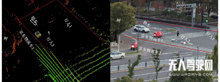 下图显示的是在常熟某路口部署的实例。在该路口中部署有毫米波雷达、激光雷达等传感器,通过Explorer-E软件对传感器数据的融合处理,将路口的路况信息如车辆的位置、速度、航向角,行人的位置等传送给无人物流车,提高其驾驶的安全性。