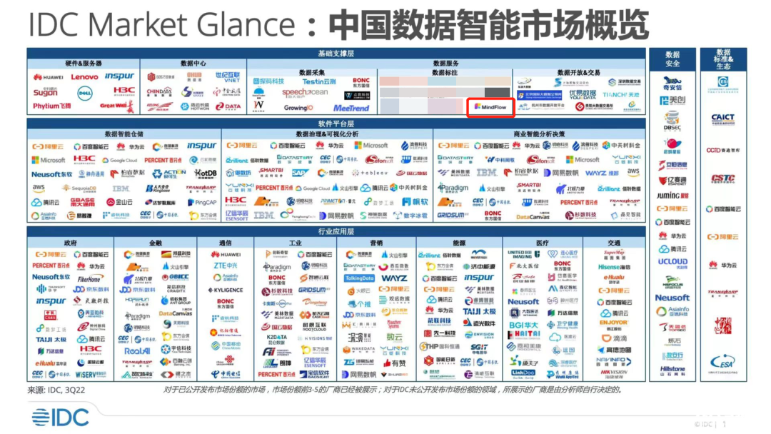 日前,国际知名市场调研机构IDC发布了《Market Glance:中国数据智能市场概览,2022》报告。