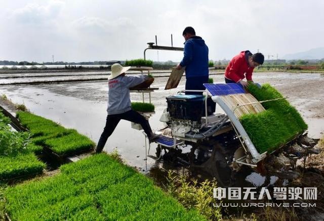 导语:4月12日,智能无人驾驶插秧机在武义县泉溪镇麻蓬自然村种粮大户金霖放田头精准走位、插种早稻秧苗。该款智能无人驾驶插秧机是我国自主研发,采用北斗定位技术,在插种田块四角定位后将数据输入遥控设备,工作人员按下启动键就能在田里来回掉头、自动插种秧苗,一台机器一天能插种水稻20多亩,大大减轻了农民的劳动強度。