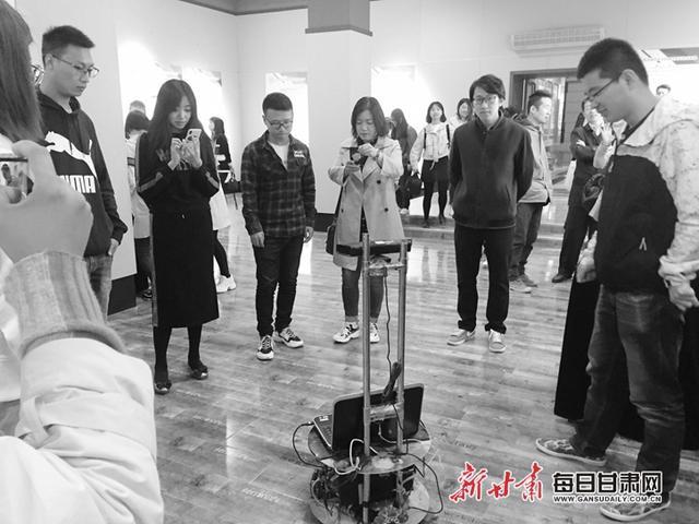 在展示现场,记者看到在一条白色特制道路上,一辆汽车模型正沿着设定道路行驶,而这辆车并没有遥控器,它正是由西北师范大学物理与电子工程学院的大学生团队研制的无人驾驶汽车,它的行驶轨迹主要是依靠特制道路上的磁条来指引。
