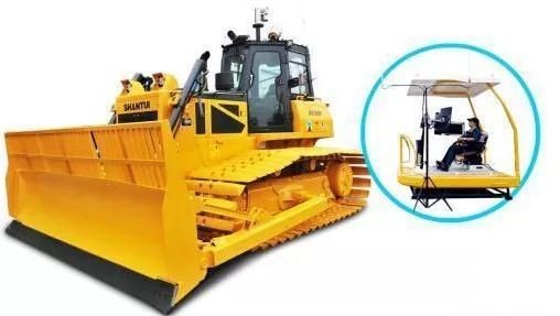 这是由山推自主研发生产的国内首台无人驾驶遥控推土机,无线遥控距离可达1000米,实现了工程机械行业无人驾驶技术的重大突破。