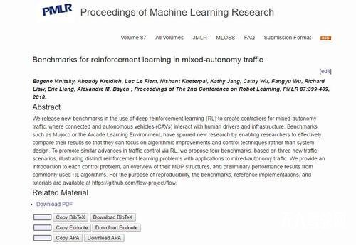 这些基准会作为Flow工具项目的一部分,这个项目用于在交通模拟器SUMO和AIMSUN中将控制和强化学习(使用RLlib 和rllab作为强化学习库)应用于自动驾驶车辆和交通灯。这些基准中获得高分意味着实际拥塞指标的改进,例如平均行驶速度,道路系统总延迟和道路吞吐量。通过在这些基准上取得的进展,希望可以回答有关AV应用的基本问题,并给出现实世界中部署可改善拥塞的AV的路线图。