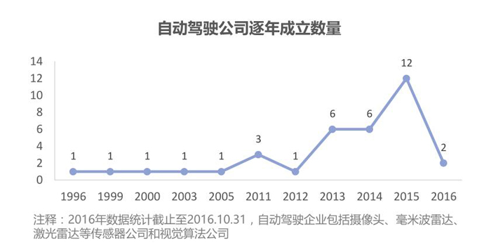 自动驾驶企业中算法企业最多,2015年该领域迎来创业高峰