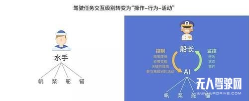 我们知道自动驾驶任务交互级别转变为“操作-行为-活动”。可以打个比方,有了自动驾驶,用户的角色就从水手升级成了船长。他们不用再去参与帆、桨、舵、锚的具体控制,而是告诉AI“去哪里?”,同时去监控AI的行为、状态、事件。