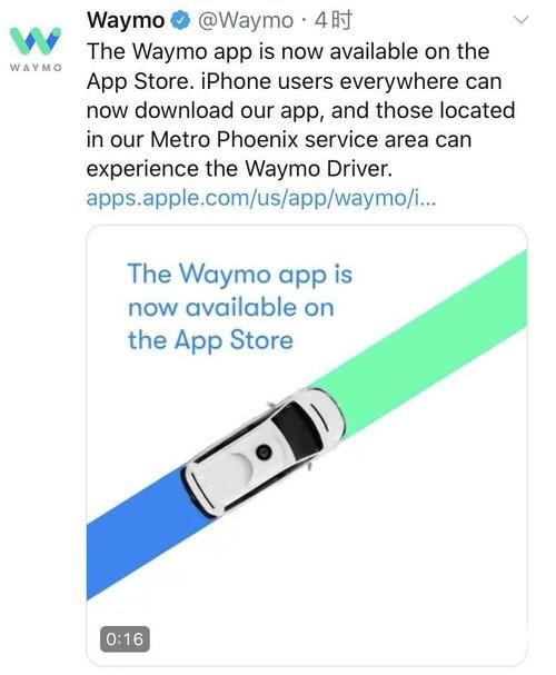 根据Waymo的推特内容,现在所有的iPhone用户都可以下载Waymo应用程序,在美国凤凰城Waymo运行地区的居民可以通过Waymo App直接体验Waymo的无人驾驶汽车。