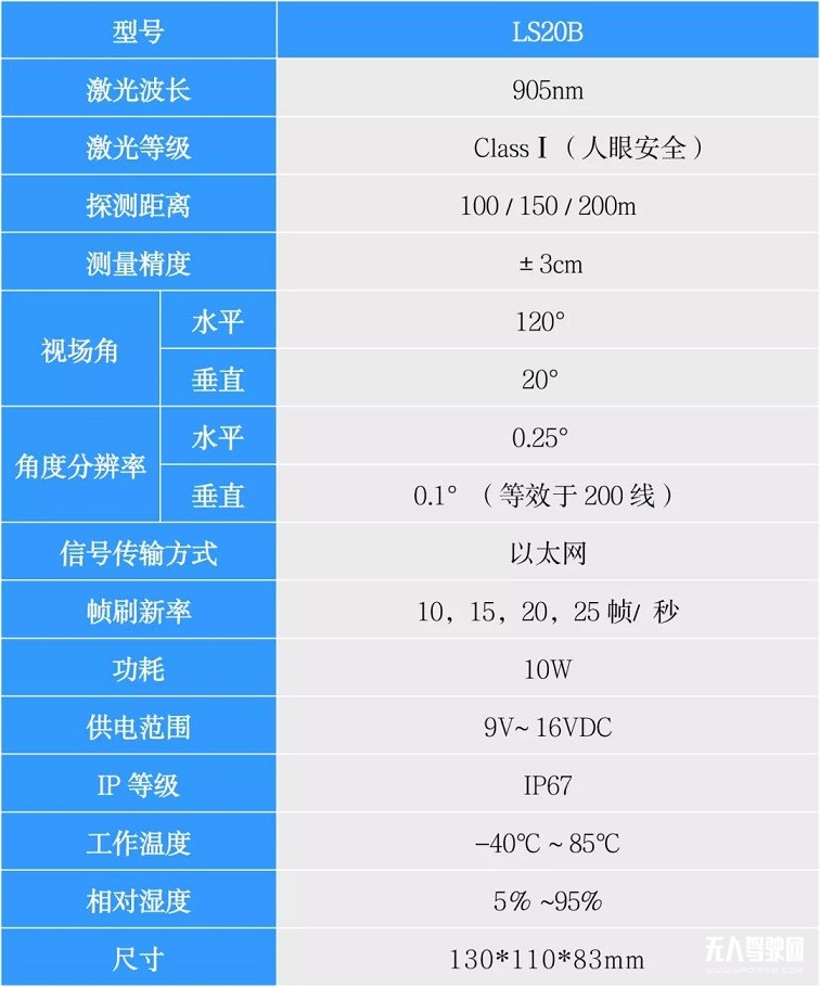 承袭了镭神激光雷达一以贯之的卓越性能与稳定性, LS20B严格按照国际车规标准进行了系统设计,拥有水平120°、垂直20°的宽广视域,角度分辨率之高可等效于200线机械式激光雷达的扫描效果,25FPS的刷新帧率确保了雷达在高速运动场景中也能实时快速响应,嵌入式的外观设计可与汽车完美融合,多层次兼顾了自动驾驶汽车对激光雷达的高性能与高稳定性要求。