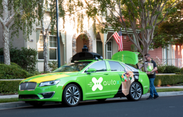 Autonomous Delivery(自动驾驶递送)试运营服务,提供无人驾驶生鲜递送服务,这在无人驾驶公司中尚属首次,也让世界记住了AutoX独特抢眼的鲜绿色无人车。