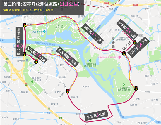 第二阶段开放道路测试路段已于今年9月18日公布,开放测试道路位于嘉定区和临港地区,全长共计31.6公里,分别是嘉定区新开放5.5公里,临港地区新开放26.1公里,用于乘用车自动驾驶技术和商用车自动驾驶技术的研发测试,具体获牌的车企尚未公布。