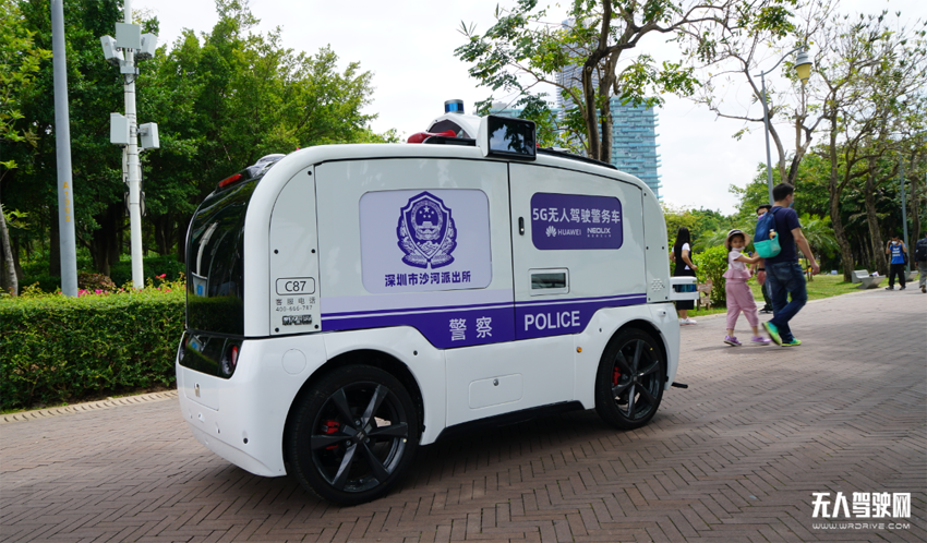 据悉,南山公安分局正在世界之窗警务室打造5G智能应用警务室,提高预测预知预判能力,打造全感智防安全区。而5G无人警务车就是其中重要的感知设备,由南山公安分局和华为技术有限公司、中国移动、新石器慧通(北京)科技有限公司联合推出,目前正在深圳湾公园试点运行。