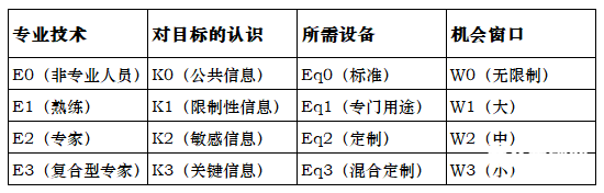 由于篇幅所限,这里不提供各因素的详细定义,详细信息请查阅ISO/IEC 18045:2008 附件B。
