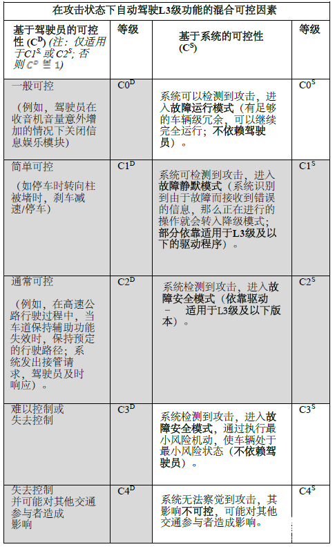 作为信息安全风险评估的一部分,"可控性"最早是基于 ISO 26262 和 MISRA 安全分析指南提出。对于自动驾驶系统而言,由自动驾驶功能/驾驶员组合而成的可控性对攻击的影响有直接的影响。