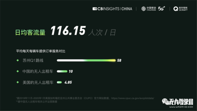 而在中国运行的无人出租车平均每天每辆车提供近 10 次订单服务,在美国这个数字为 4.85 次。