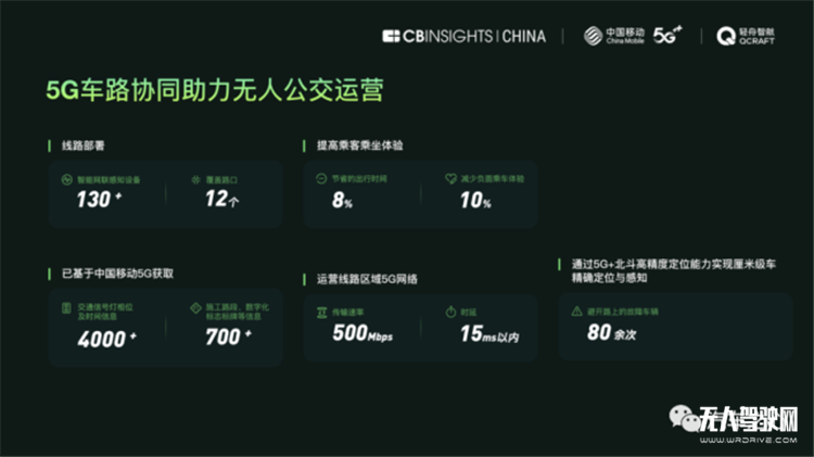 CB Insights 是全球知名的市场数据研究平台和权威智库,中国移动是中国规模最大的移动通信运营商,轻舟智航则是无人驾驶领域的头部企业,在多地部署有无人公交线路。