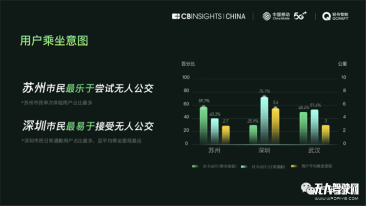 深圳市民日常通勤用户占比最多,且平均乘坐里程最远,最易于接受无人公交。
