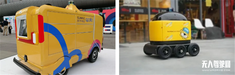 苏宁:落实在南京的苏宁小店社区的“卧龙一号”,是一个深度结合物联网、云计算、AI等最新技术描绘出来的一个无人配送快递车,续航可达8小时。在智能感应方面主要采用多线激光雷达+GPS+惯导等多传感器融合定位方式,融合激光雷达拥有更加灵敏的避障反应能力;在人机交互方面卧龙一号有着更加高效的地形适应能力,可以智能提示路过的行人、车辆和障碍物,为规划出最优绕行路径提供依据。
