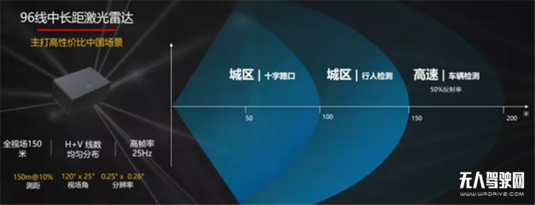 成本方面,在华为的自动驾驶方案中,通过自研的激光雷达算法实现了接近L4级别的自动驾驶,其中,量产的96线激光雷达吸引了众多目光。早在去年,华为就公布了自研的量产96线激光雷达的方案,按照年产10万套/线的计划,华为称,96线激光雷达的最终售价可控制在200美元以内,在未来的3—5年内,激光雷达方案成本有望大幅降低,实现多数量产、成功落地。