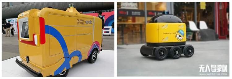 苏宁:落实在南京的苏宁小店社区的“卧龙一号”,是一个深度结合物联网、云计算、AI等最新技术描绘出来的一个无人配送快递车,续航可达8小时。在智能感应方面主要采用多线激光雷达+GPS+惯导等多传感器融合定位方式,融合激光雷达拥有更加灵敏的避障反应能力;在人机交互方面卧龙一号有着更加高效的地形适应能力,可以智能提示路过的行人、车辆和障碍物,为规划出最优绕行路径提供依据。