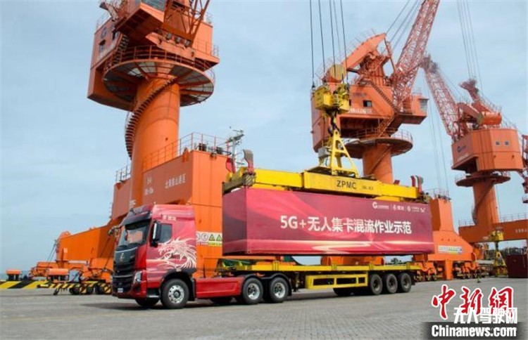 28日下午,在北海铁山港6#泊位现场,一辆装载了5G+无人集卡系统的东风柳汽大卡车在接收到调度系统的指令后,无需司机驾驶,即自动行驶,精准到达目标作业区域。在完成集装箱装卸和运输后,自主完成起步转弯、加速减速、停车等动作,作业全过程通过5G网络以视频的形式回传到控制室内,实现集装箱运输无人化、作业流程可视化、港口生产智能化和信息化。