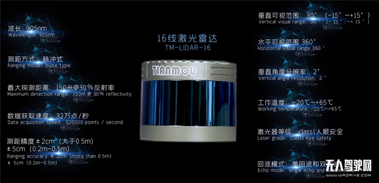 值得一提的是,TM-LIDAR-16是全球首款能在极寒地区工作的16线激光雷达。