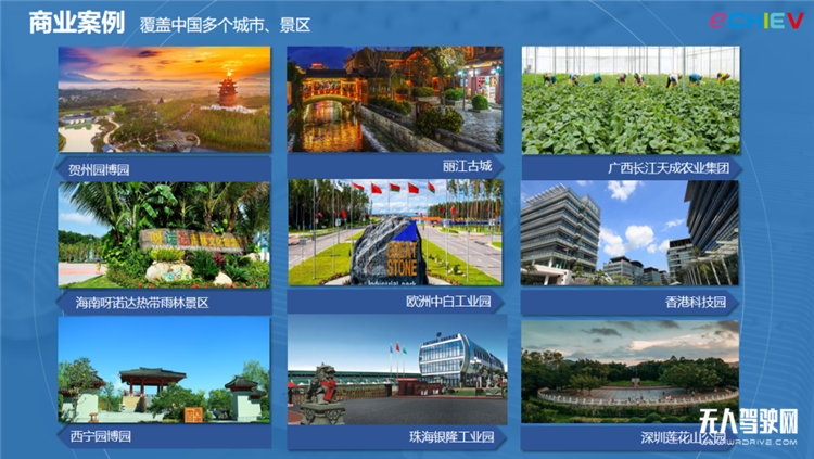 近10个景区智能化项目落地,以智慧景区为方向定位,为景区客户解决旅游管理痛点,科技赋能旅游;近10个厂区无人接驳项目开展,结合工业厂区区域特色,布局应用场景,实现无人驾驶全场景覆盖。通过完整的L4级无人车解决方案,实现了从运输、自动贩卖,安防和巡检无人车全系产品,已落地布局包括智慧园区、智慧景区、智慧厂区、智慧交通、主机厂等领域。目前已在丽江古城、西宁园博园、贺州园博园、海南呀诺达等100多个地标级场景投入运营,逐步实现可量产、真正“无人”的无人驾驶商业落地。