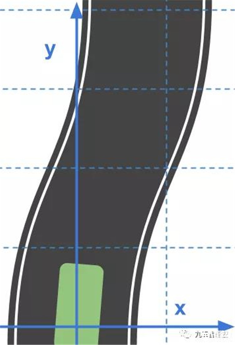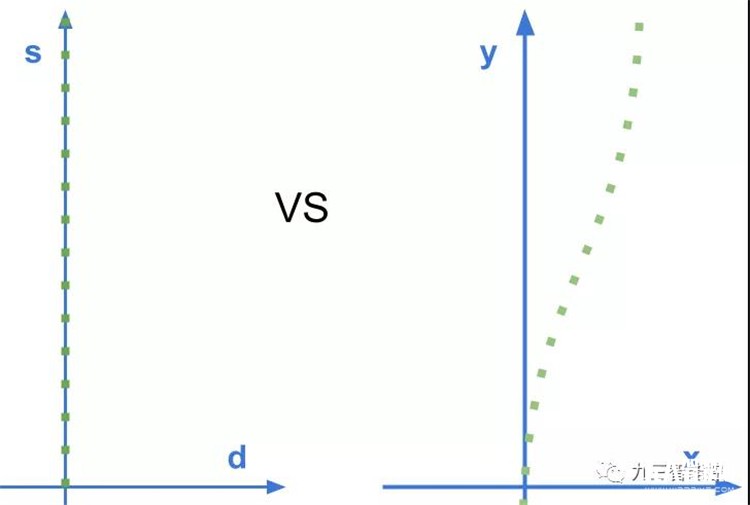 通常,我们习惯使用笛卡尔坐标系来定义空间点的位置。但在现实中,道路往往不是“笔直”的,因此对于人类非常简单的操作(如判断车辆在哪条车道),在电脑的笛卡尔坐标系中,往往是难以准确定义的。下图展示了我们使用笛卡尔坐标系时所面临的问题: