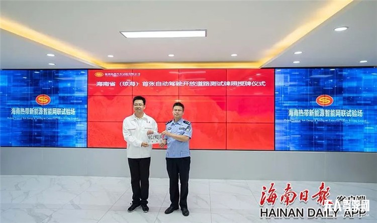 8月25日,海南省首张智能汽车道路测试牌照授牌仪式在位于琼海市的海南热带汽车试验有限公司(海南试验场)举行。此举标志着海南自动驾驶智能网联汽车进入自动驾驶界别取得新突破。