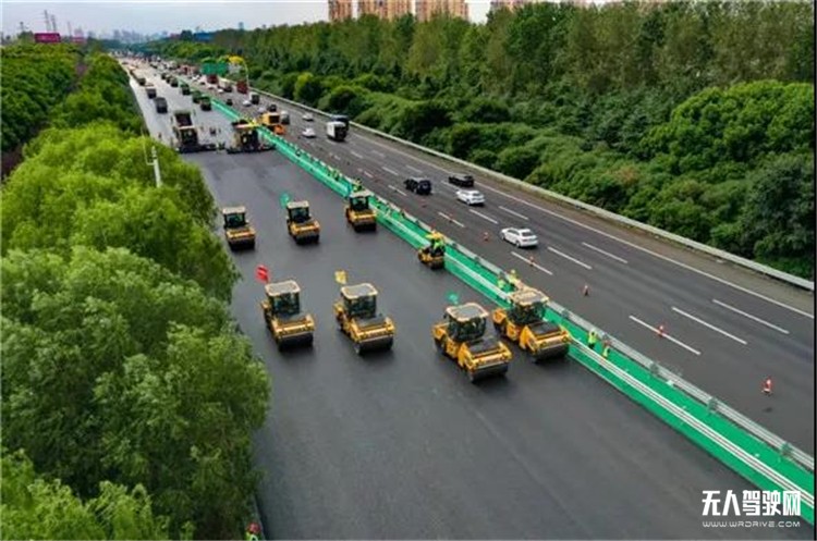 9月6日,央视报道宁沪高速苏州段施工现场,10台徐工双钢轮压路机、2台徐工大宽度摊铺机组成的无人驾驶摊压机群,正在井然有序地进行沥青层面协同摊铺碾压作业。这是迄今全球规模最大的无人集群摊铺养护施工,是全国最高等级路面首次无人养护施工应用,也是国内首次在已运营的高速公路进行无人集群智能化养护。