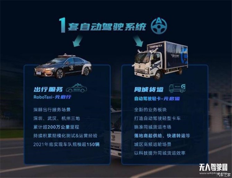 在公司业务战略中,元戎启行还对其两大业务板块的相应产品进行了命名。RoboTaxi——自动驾驶乘用车,命名为“元启行”。自动驾驶轻型卡车则被命名为“元启运”。元戎启行已经在深圳市中心开始了RoboTaxi试运营,今年也将推进自动驾驶在同城货运中的应用。