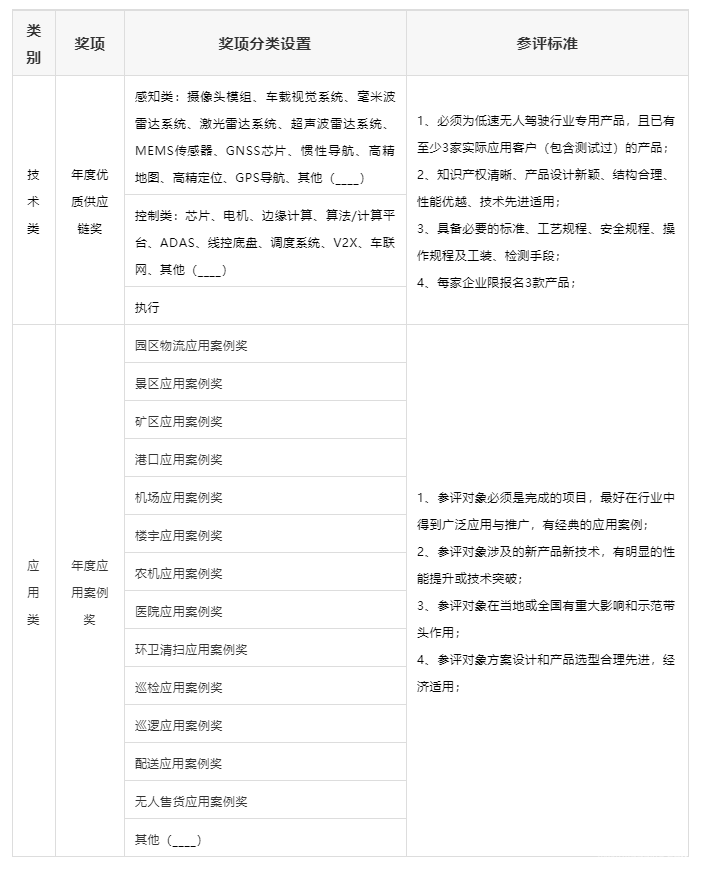 本活动涵括低速无人驾驶产业链上下游,所有低速无人驾驶厂商都有机会竞逐奖项。