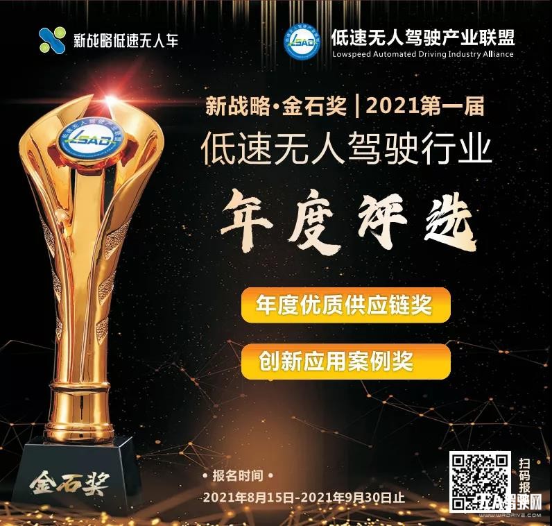 4、网络投票占20%,评审专家评审占80%;最终评审结果于2021年11月公布,并在12月于武汉(时间、地点待确定)由联盟主办的《2021低速无人驾驶(LSAD)产业联盟发展年会》上隆重颁奖。