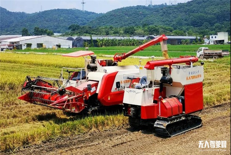 无人驾驶运粮机一般与无人驾驶收割机协同作业,通过5G信号,导航精准定位,运粮机接收到收割机发出的“粮仓已满”信息后,立即开到收割机旁边,收割机伸出卸粮筒将谷物卸到运粮车中,误差可以控制在厘米级。
