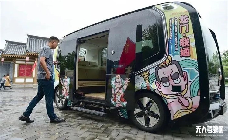 国庆假期,河南洛阳,龙门石窟景区内,新投用的两台5G无人驾驶车开始试运营,带领游客体验一场奇妙的古今穿越之旅。