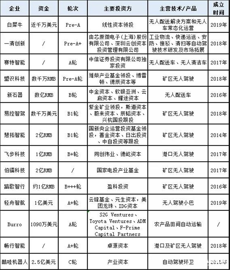 就应用场景而言,无人环卫、无人配送、港口及矿区无人驾驶是融资较为集中的四大领域。