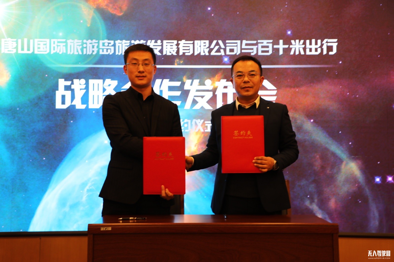 2022年1月6日下午2点,百十米出行与唐山湾国际旅游岛旅游发展有限公司战略合作签约仪式在唐山来悦景澜度假酒店举行,现场聚集了唐山旅游部门的多位领导和来自唐山旅控集团的多位负责人以及众多科技、旅游行业的媒体记者,主要出席的领有唐山国际旅游岛文化广电和旅游局局长李树枚、旅控集团总经理肖培震,签约双方代表为唐山国际旅游岛旅游发展有限公司总经理张楠、百十米出行总经理魏磊、百十米出行董事兼顾问总统有话说发起人汪安迪,作为百十米出行的天使轮投资方黑白集团董事长何勇、熊猫健康总经理张浩然也亲临现场并发表签约致辞,共同见证自动驾驶行业发展的新篇章。