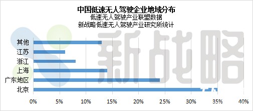《报告》显示,目前中国市场涉及低速无人驾驶技术研发及应用的企业约为500家,包括创业公司、互联网企业、传统车企及相关产业链上下游企业等。且分布较为集中,北京、广东和江浙沪地区占据了绝大多数份额。