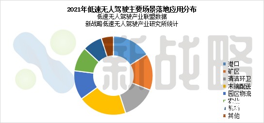 从场景看,2021年低速无人驾驶主要场景中,末端配送领域应用占比最大,其次是港口和矿区,这主要得益于智慧港口与矿区建设的加速;园区物流主要以牵引车及应用了无人驾驶技术的AGV为主;农业领域,无人农机的落地也在加速;机场领域主要应用的车型有无人牵引车、无人接驳车、无人巡逻车等;此外,在景区、商场、火车站等其他场景,无人环卫车等无人驾驶类产品的落地数量也在增多。(细分场景/产品市场份额详见《报告》)