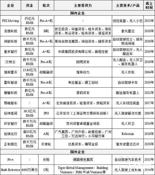 从融资领域来看,国内整车制造商、解决方案供应商及零部件企业均有融资,涉及无人小巴、无人环卫车、无人配送车、无人农机、自动驾驶卡车等多个赛道,产业整体发展稳定。