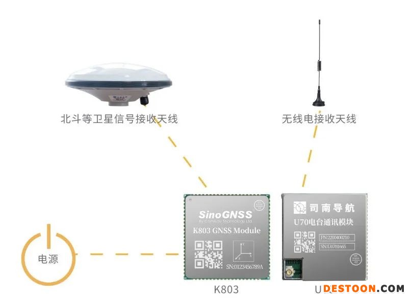 (1)建立单基准站,基准站+车载端:“1+1”的模式,如上面介绍的基准站,可以通过无线数传模块获取差分数据;