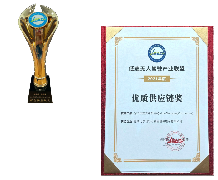 6月16日,中国低速无人驾驶场景生态共建拓展大会于深圳召开,会上颁发了2021年度低速无人驾驶行业优质供应链奖,旨在加快功能型低速无人车的落地应用,推动和甄选行业先进技术力量,搭建产业链品牌聚集平台。史陶比尔携QCC快速自动充电解决方案脱颖而出,荣获该奖项。
