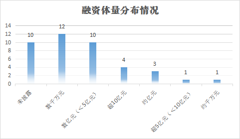 从融资体量看,二季度除了未披露资金的10起融资,其他融资亿元级居多,达18起。其中,1起超5亿元,4起超10亿元。