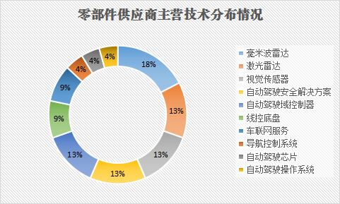 而零部件供应商有21家企业融资22起,从主营技术分布情况来看,自动驾驶核心的传感器感知技术融资企业最多,涉及毫米波雷达、激光雷达、视觉传感器的企业就有10家,占到了一半。其中,Vayyar、几何伙伴、晟德微集成电路、安智汽车4家毫米波雷达技术相关企业披露的融资总额约合超7亿元。