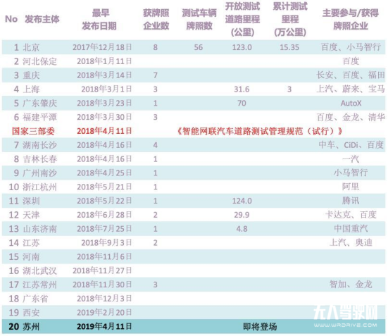据新战略低速无人驾驶产业研究所了解,从自动驾驶测试地方政策发布时间来看,苏州最早于2019年4月发布其智能驾驶路测区域和颁发首批测试牌照,是全国第20个城市。