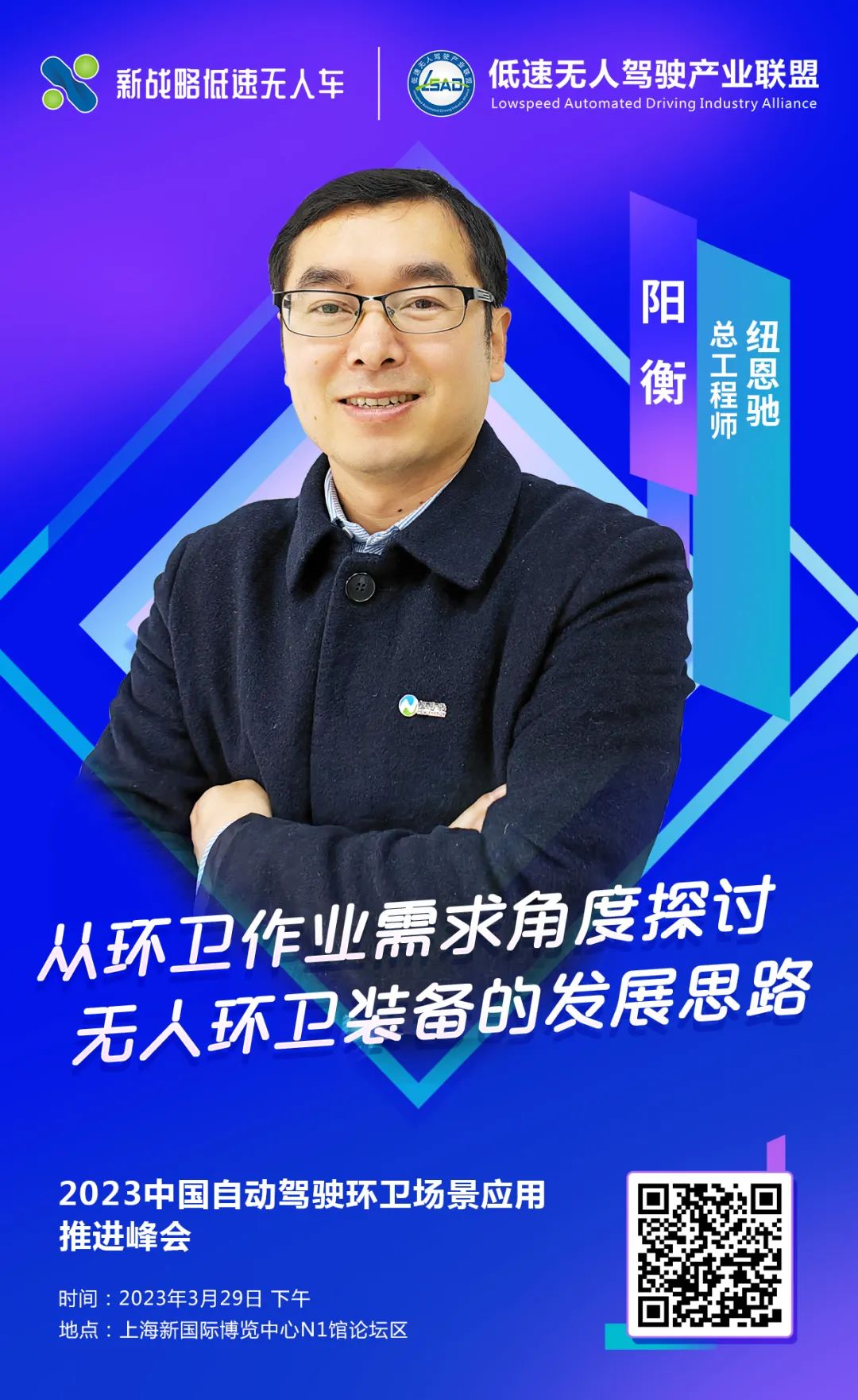 3月29日,在“2023中国自动驾驶环卫场景应用推进峰会”上,纽恩驰总工程师阳衡将带来《从环卫作业需求角度探讨无人环卫装备的发展思路》主题演讲,敬请期待!