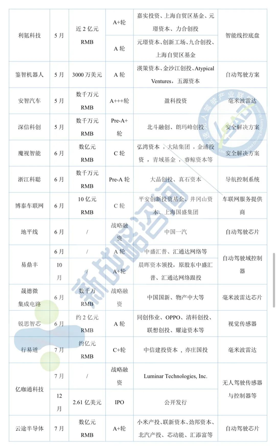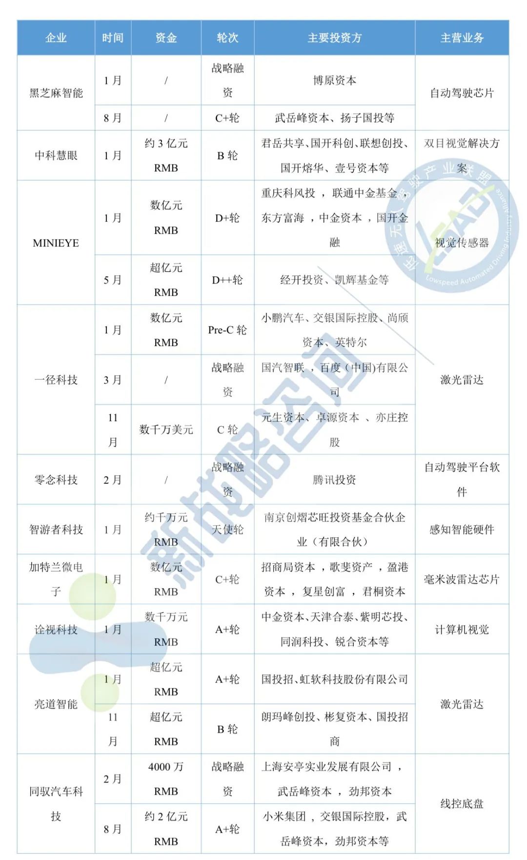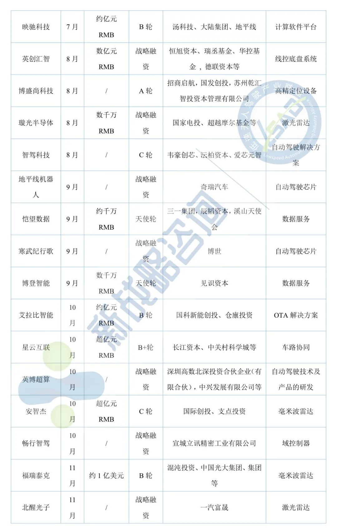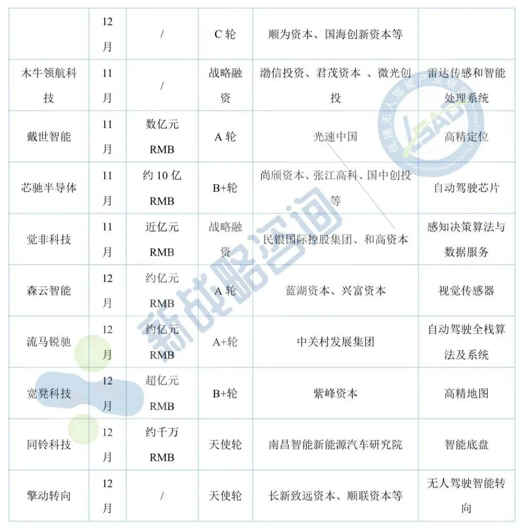 11月自动驾驶领域融资13起、超52亿元