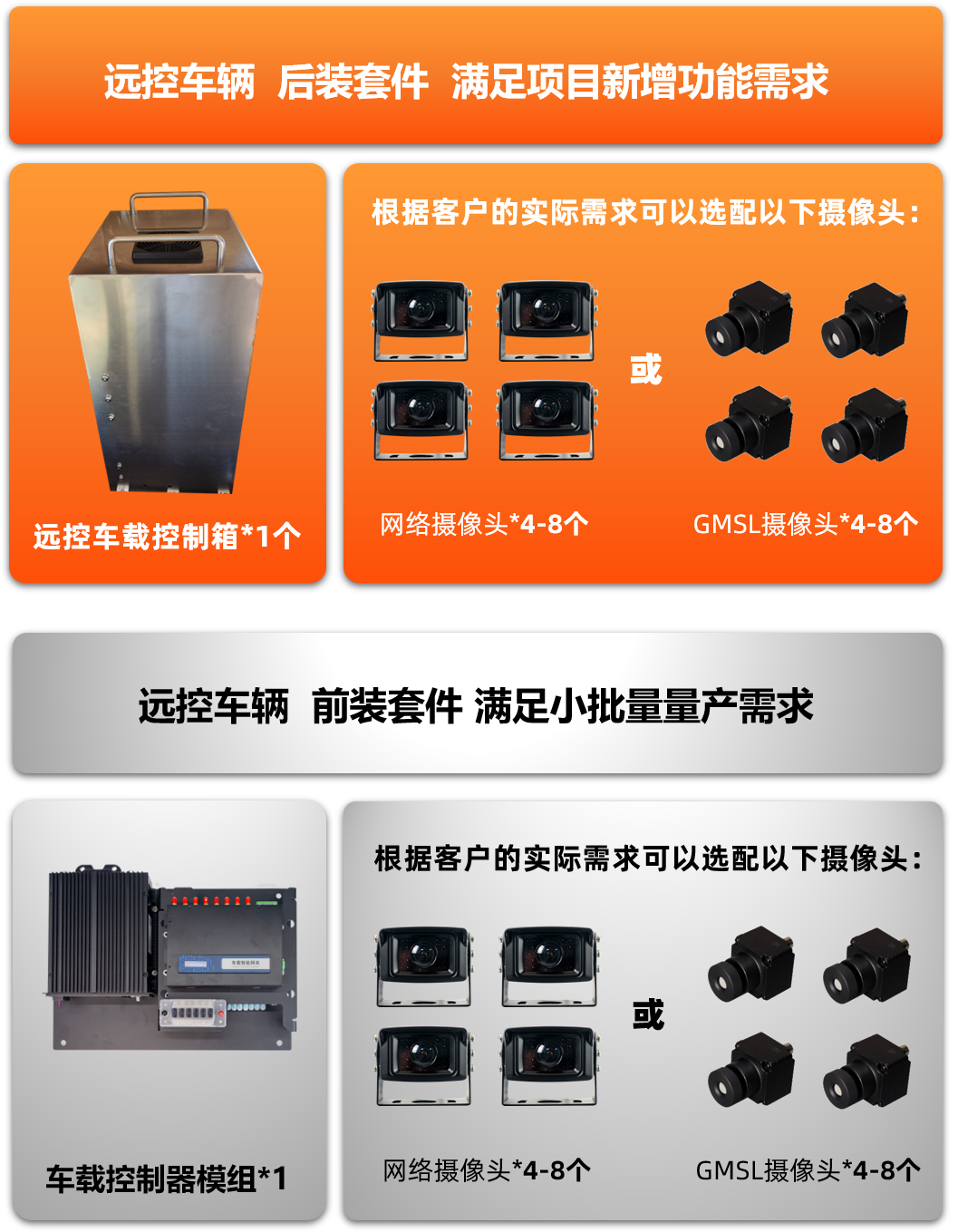 斐视科技针对被控自动驾驶车辆,推出标准化远控车载套件,自动驾驶车辆安装此套件后,即可实现远程驾驶功能,不论车辆是前装还是后装,斐视科技都推出了相适应的套件方案,适配任意车型。斐视远控车载套件已经量产,已经具备大规模运营的能力。