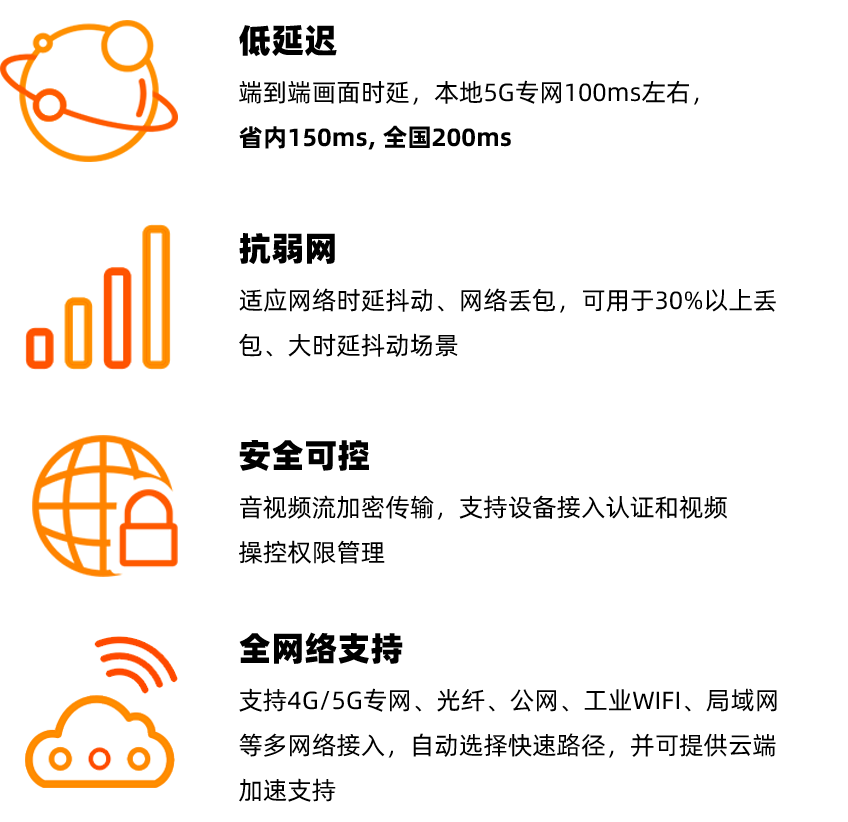 作为远程驾驶专家,斐视科技已经能够实现在5G公网环境下的稳定远程驾驶。传统音视频技术画面延迟大(超过300毫秒);带宽占用大,密集场景,易造成业务中断;弱网画面卡段,网络波动时,视频极不稳定。斐视科技针对此场景,推出超低音视频延迟服务技术解决方案,对远程驾驶的音视频的传输过程进行算法优化及编解码,保证远程被控车辆的安全稳定。斐视科技的低延迟技术具备低延迟、抗弱网、安全可控、全网络支持的特性,保障对远程驾驶车辆的全域掌控。