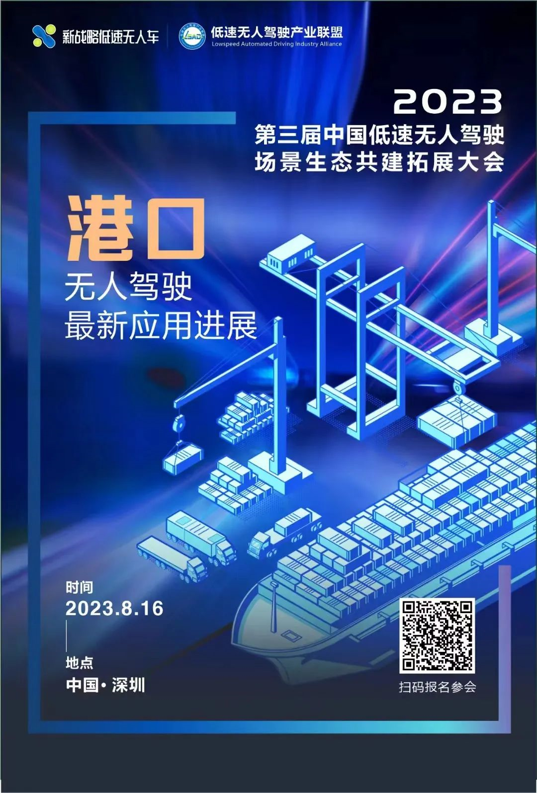 8月16日,低速无人驾驶产业联盟将在深圳举办“2023第三届中国低速无人驾驶场景生态共建拓展大会”,打造城市服务专场、港口与矿区专场,加强技术交流,分享技术成果,促进行业应用落地和创新发展,敬请期待!(参会请联系:袁先生13686824958,张女士13427940994)