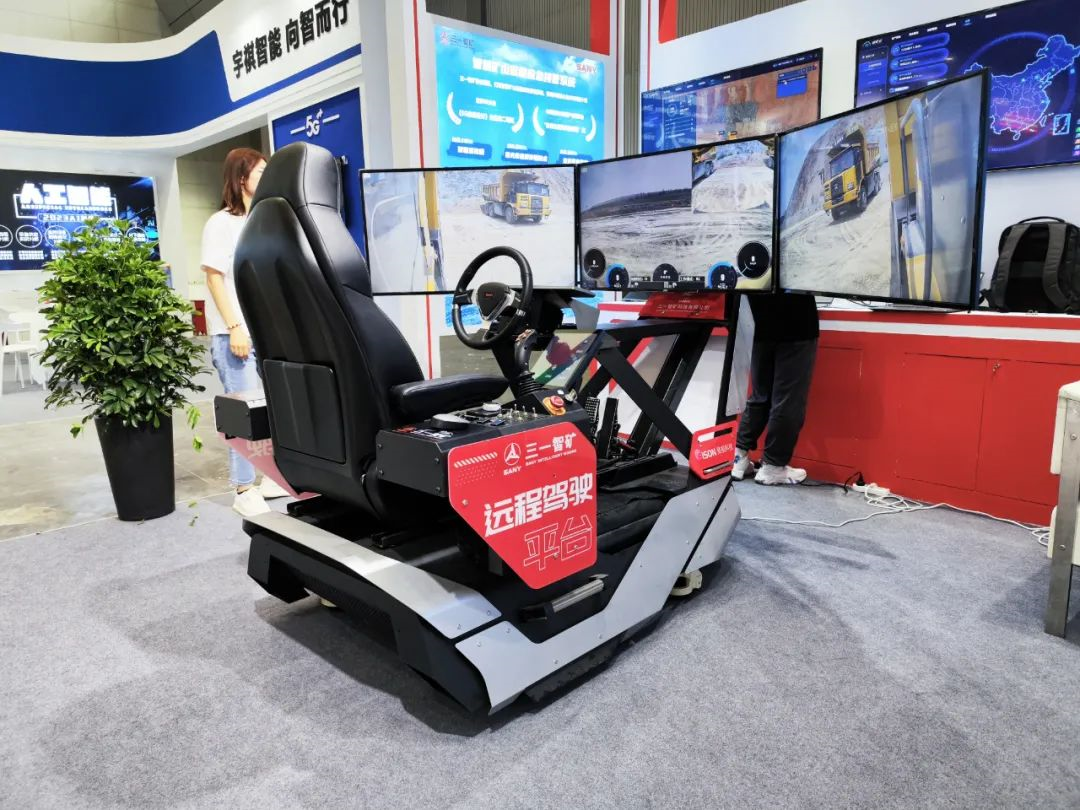展会现场,由斐视科技提供的超高性能5G远程驾驶舱,精彩亮相。产品为到场嘉宾实时连线千里之外的矿车,展示全流程展示”采运排“作业,引得现场观众纷纷驻足围观。