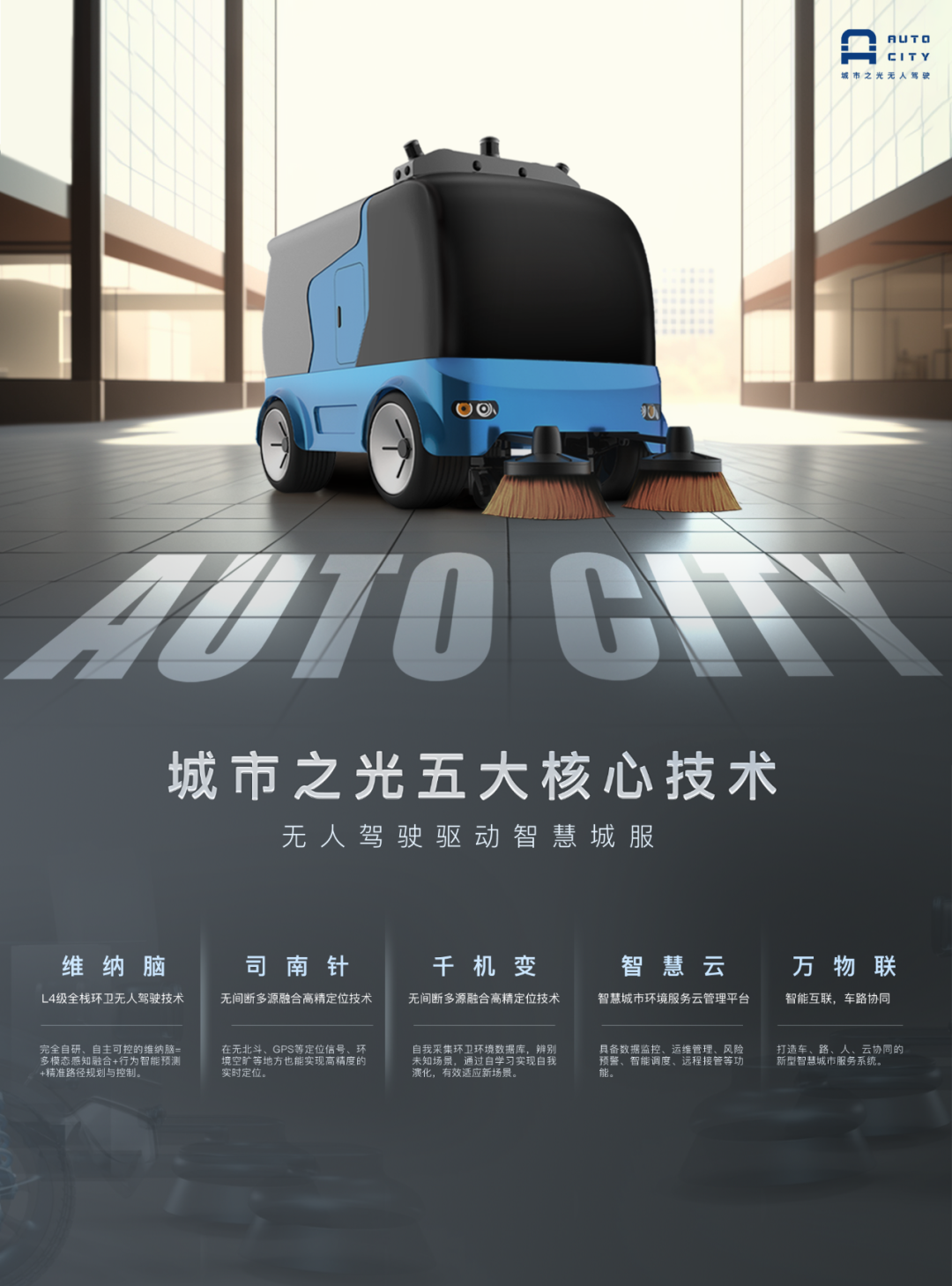 导语:城市之光作为L4级别无人驾驶新锐科技公司,致力于以无人驾驶技术驱动智慧城服,此次也积极响应市政府的号召在展会上精彩亮相,展示公司研发落地的无人驾驶清扫车“风神V2”系列。